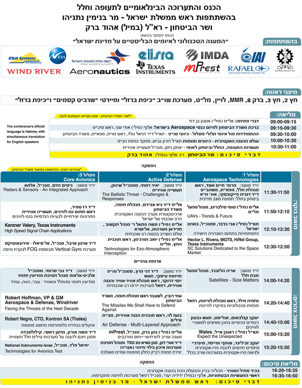 קבוצת טכנולוגיות מארגנת כנס שנתי - איירוספייס 2009, שייערך ביום שלישי, 17 בנובמבר, במרכז האירועים Avenue בקריית שדה התעופה (ליד נתב"ג).