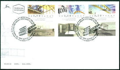 רייט. שלושת הבולים היפים, בערכים של 2.30 ש"ח, 3.30 ש"ח ו-5.90 ש"ח, עוצבו על-ידי אד ואן אויין. |