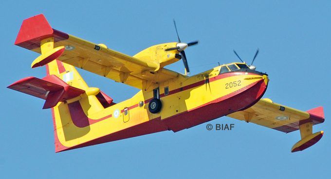 מטוס Q400-MR צרפתי. מטוס דש 8 זה הוסב לכיבוי שריפות על-ידי התקנת מכל גדול בגחון המסוגל להכיל כ-10,000 ליטר מים.
