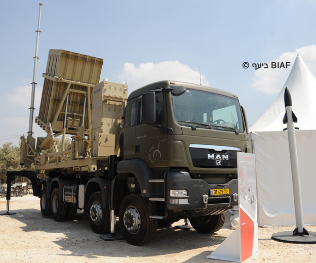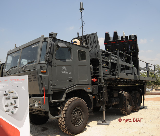 רפאל הציגה את מערכות ההגנה האווירית הניידות SPYDER. למעלה הדגם לטווחים בינוניים, למטה הדגם לטווחים קצרים.